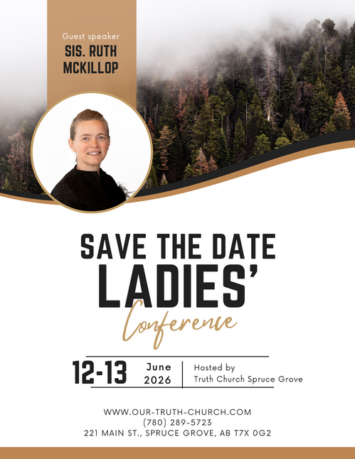 We are excited to announce that our speaker for this years Truth Church Ladies Conference is Sis. Ruth McKillop from Plaster Rock, New Brunswick. Mark in your calendars, and join us for an unforgettable time June 12 and 13, 2026. Register now to secure your spot!